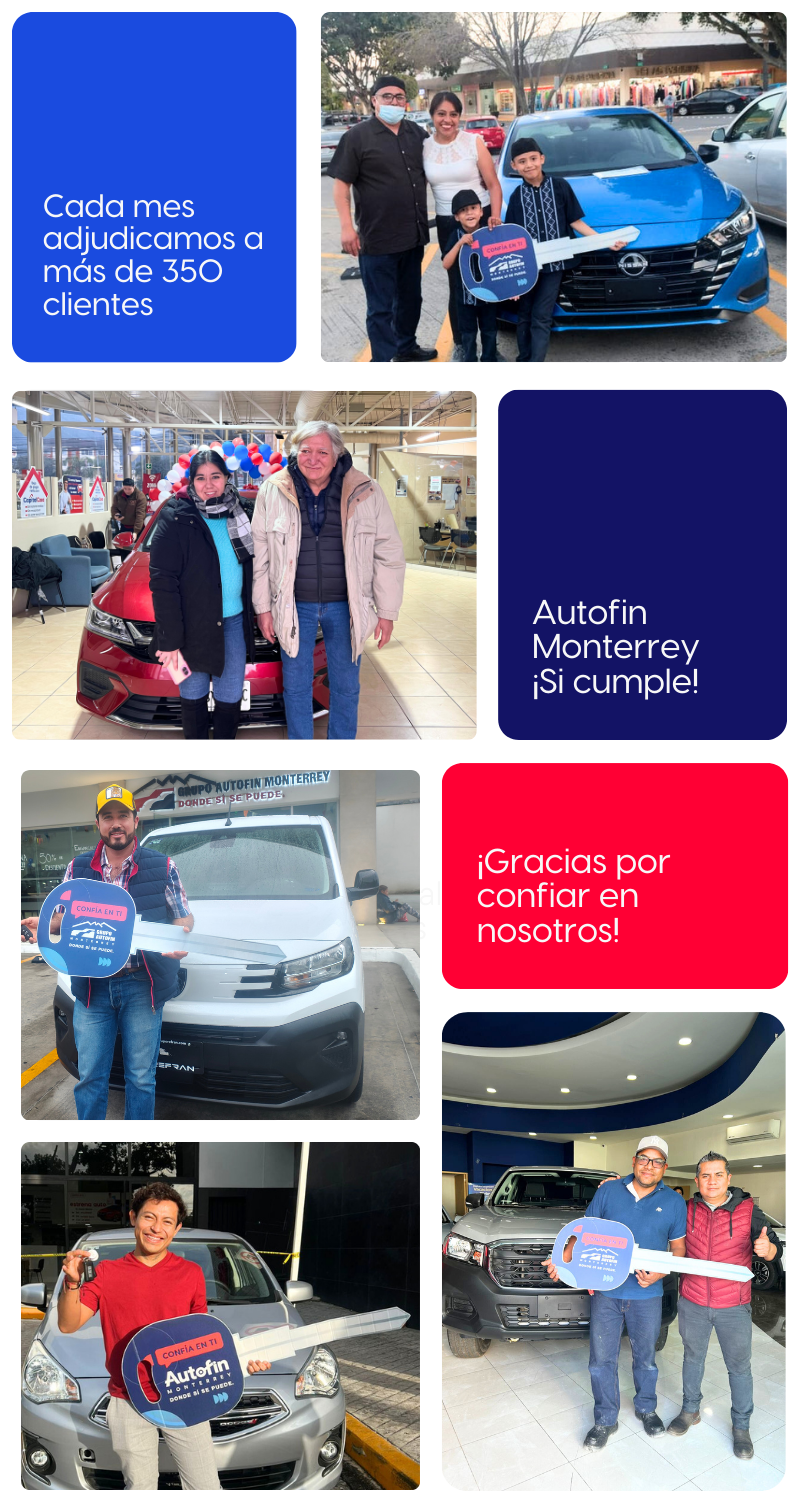 En Autofin Monterrey, tu tranquilidad es lo más importante. Estamos para escucharte, orientarte y ayudarte a lograr tu objetivo de forma segura, accesible y confiable.